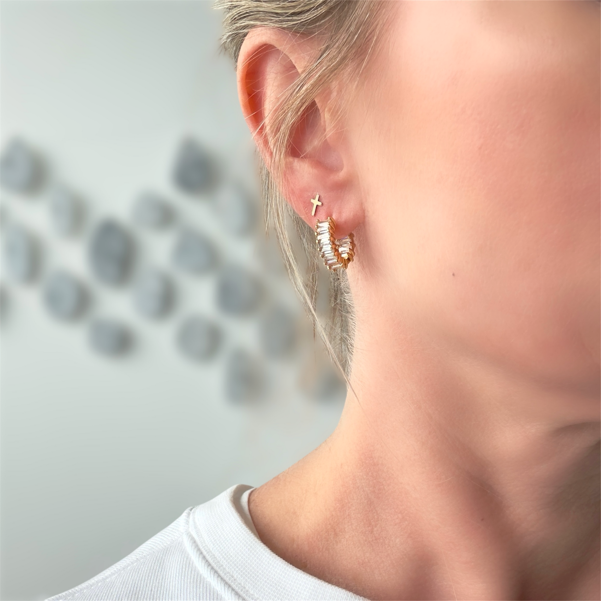 Use a jewelry cloth or soft damp cloth to clean gold filled earrings.