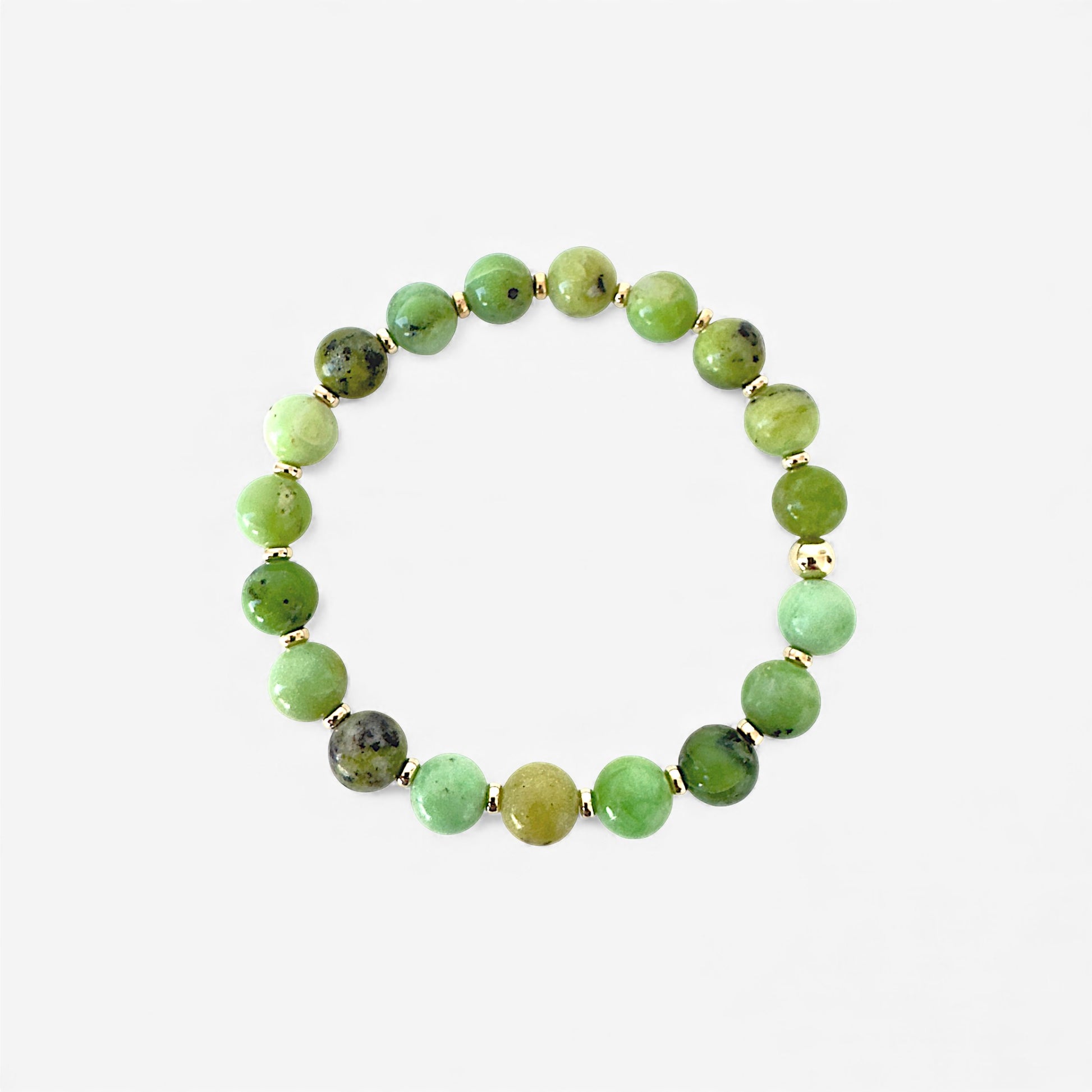 8mm green jasper beads with gold filled rondelles