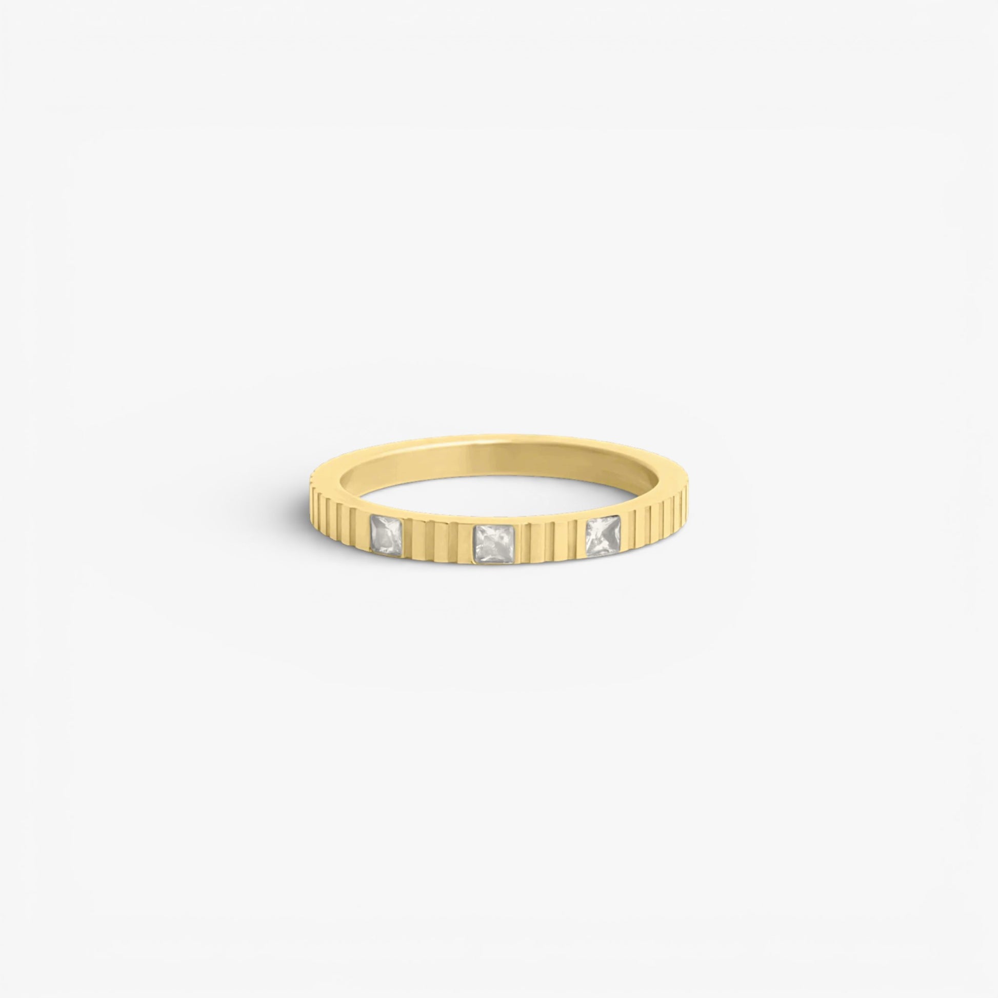 18k gold PVD stainless channeled stacking ring with 3 cz stones