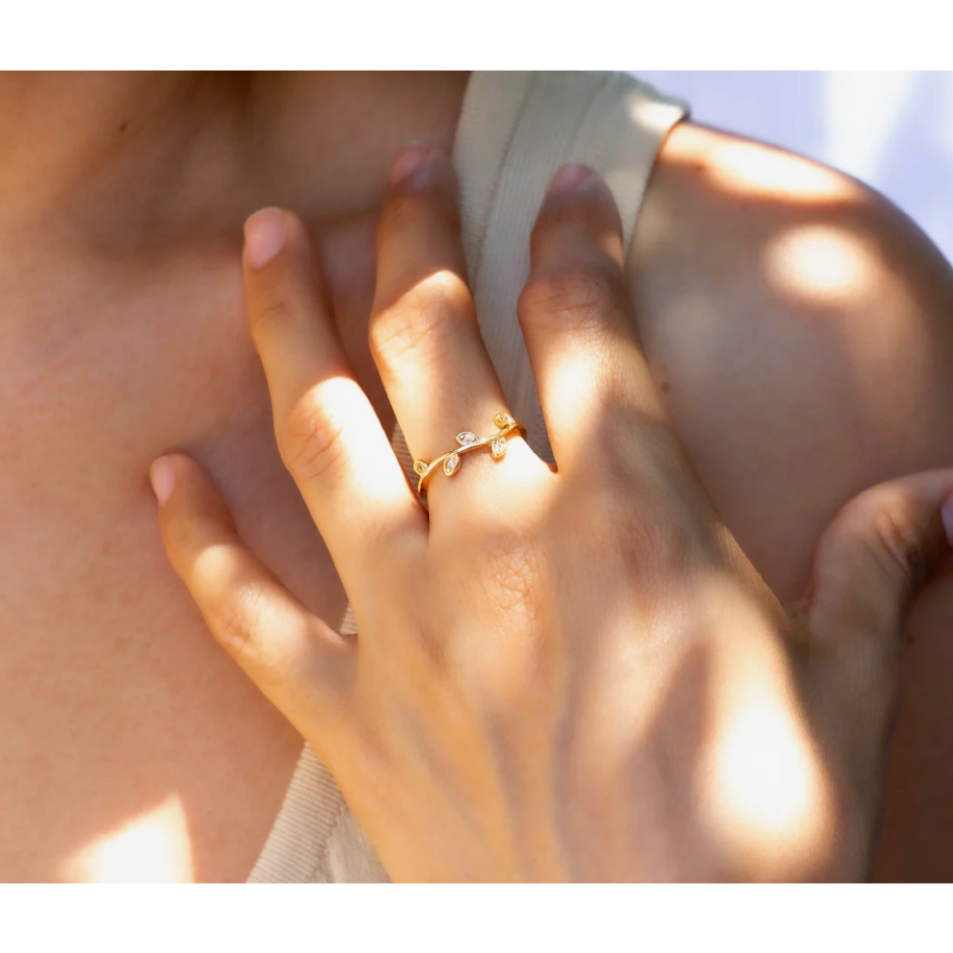 Dainty gold filled CZ leaf ring
