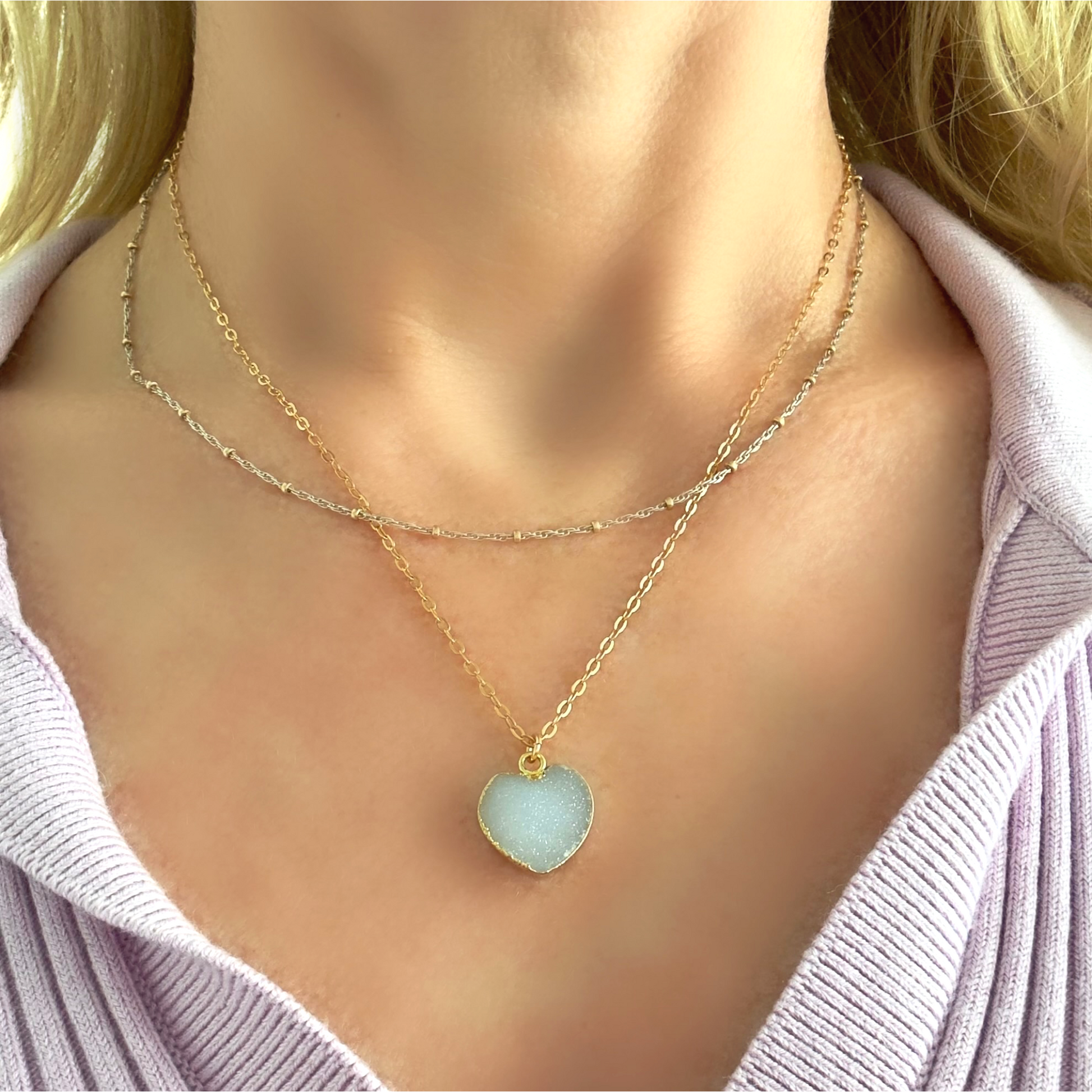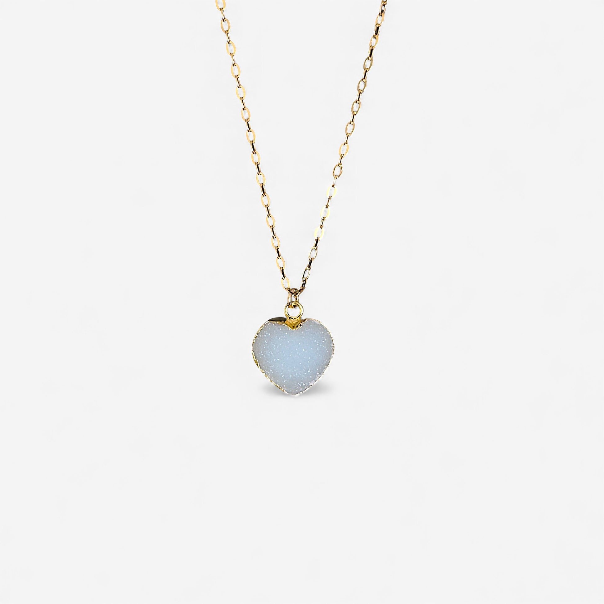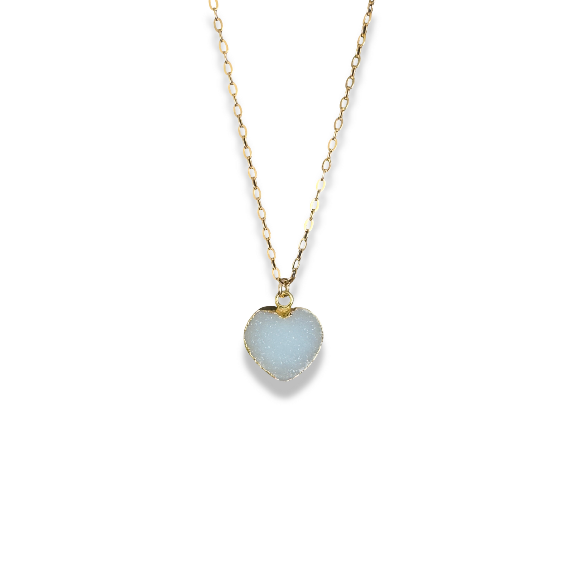 18k gold filled 18" rollo link chain with white druzy heart