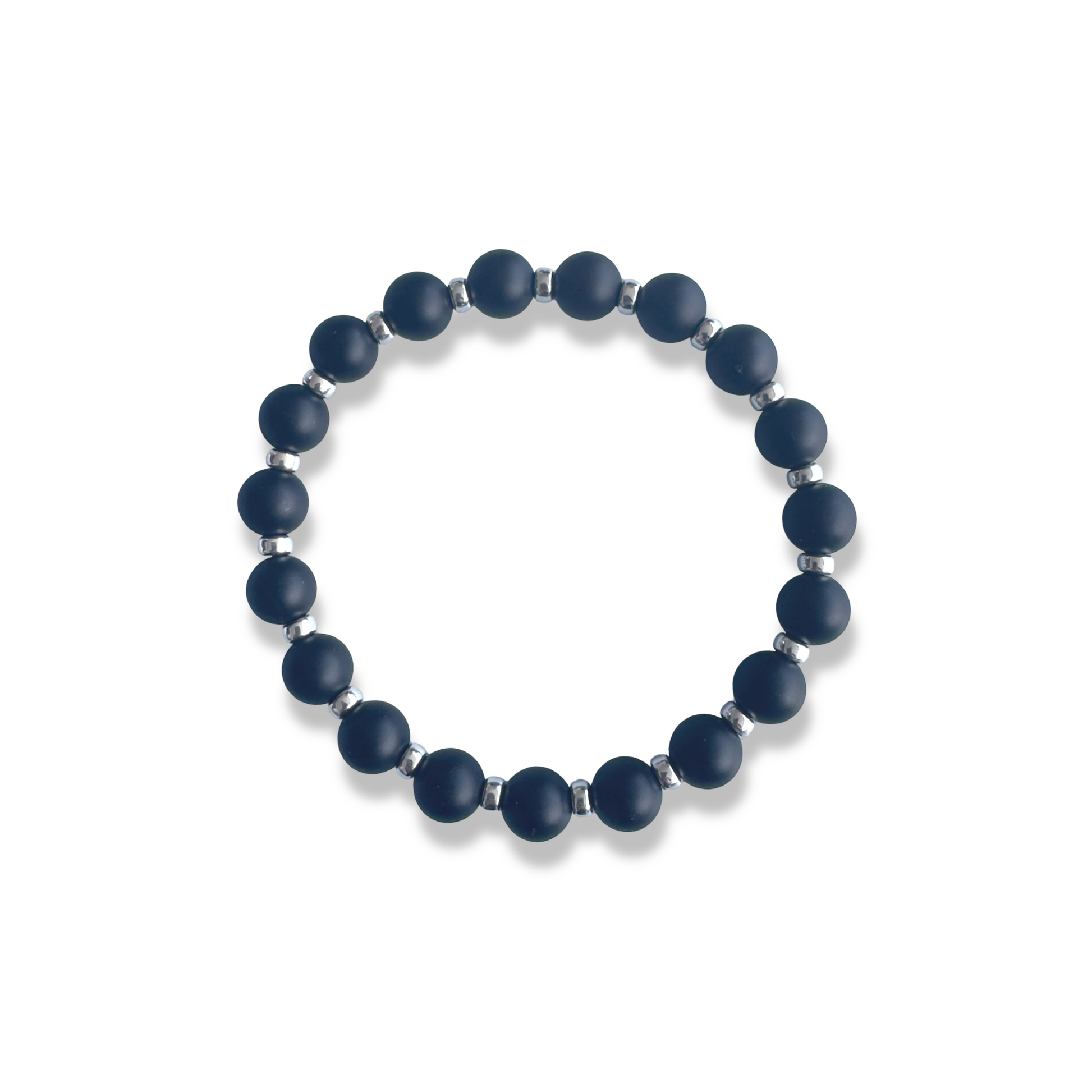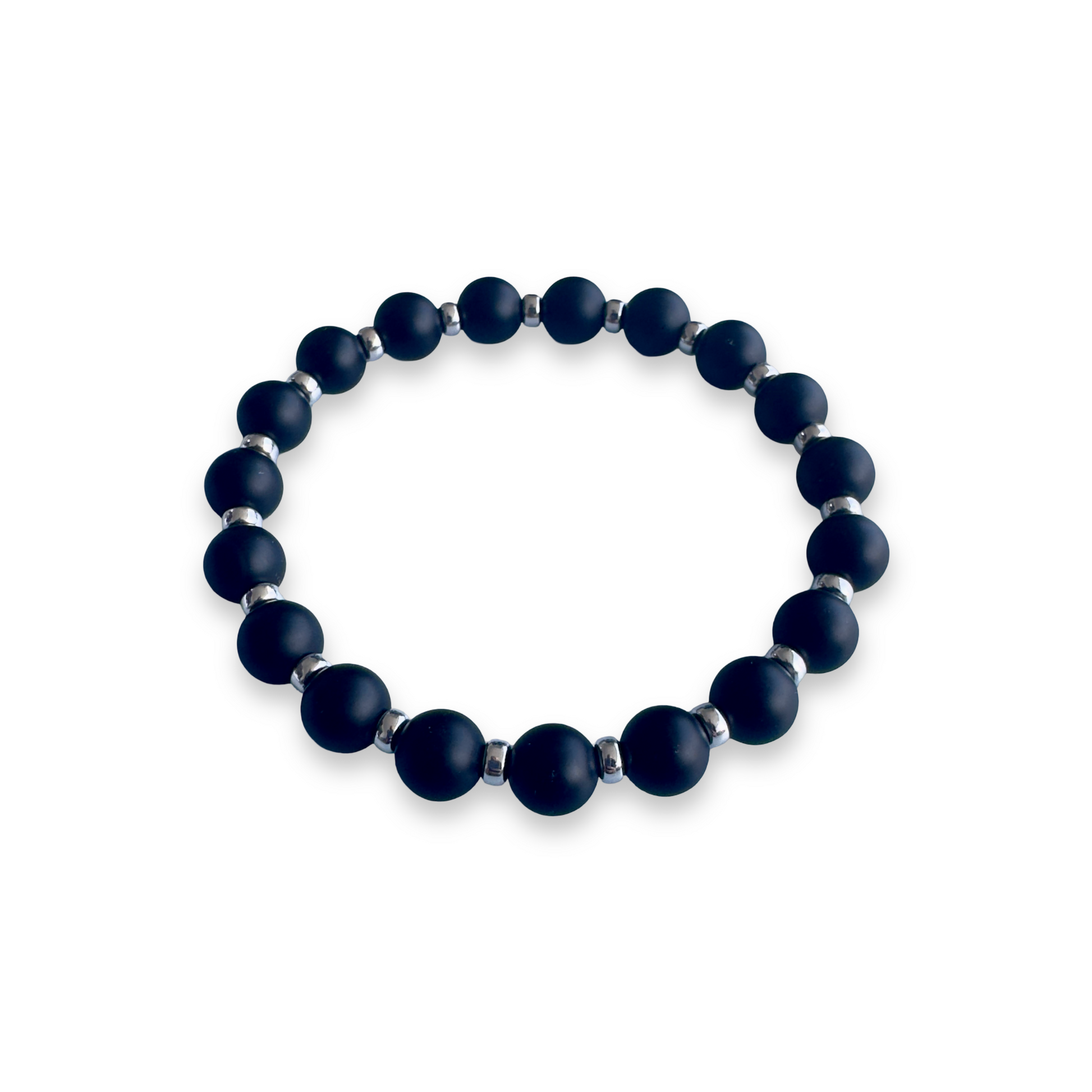 8mm matte black onyx with 4mm sterling silver accent rondelles