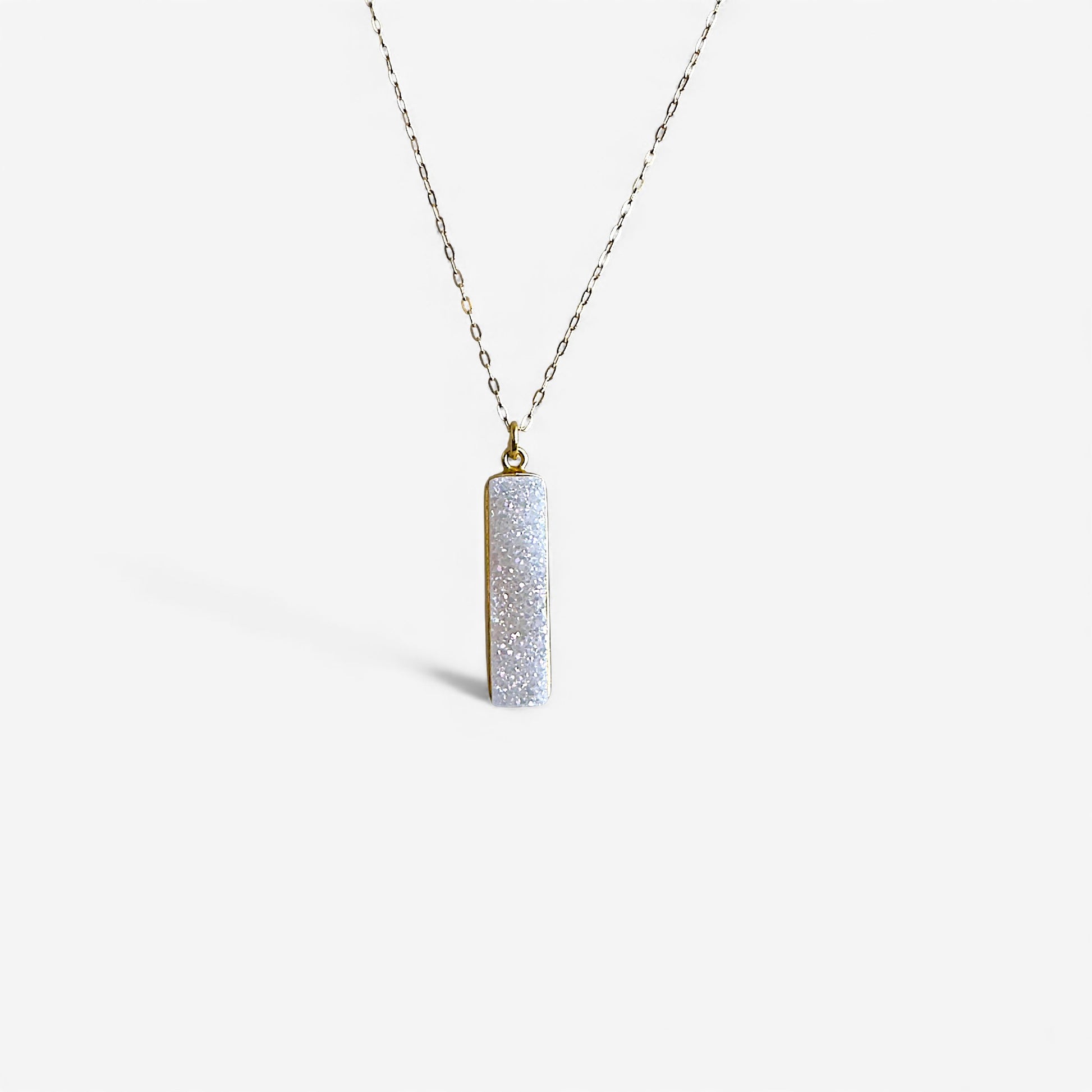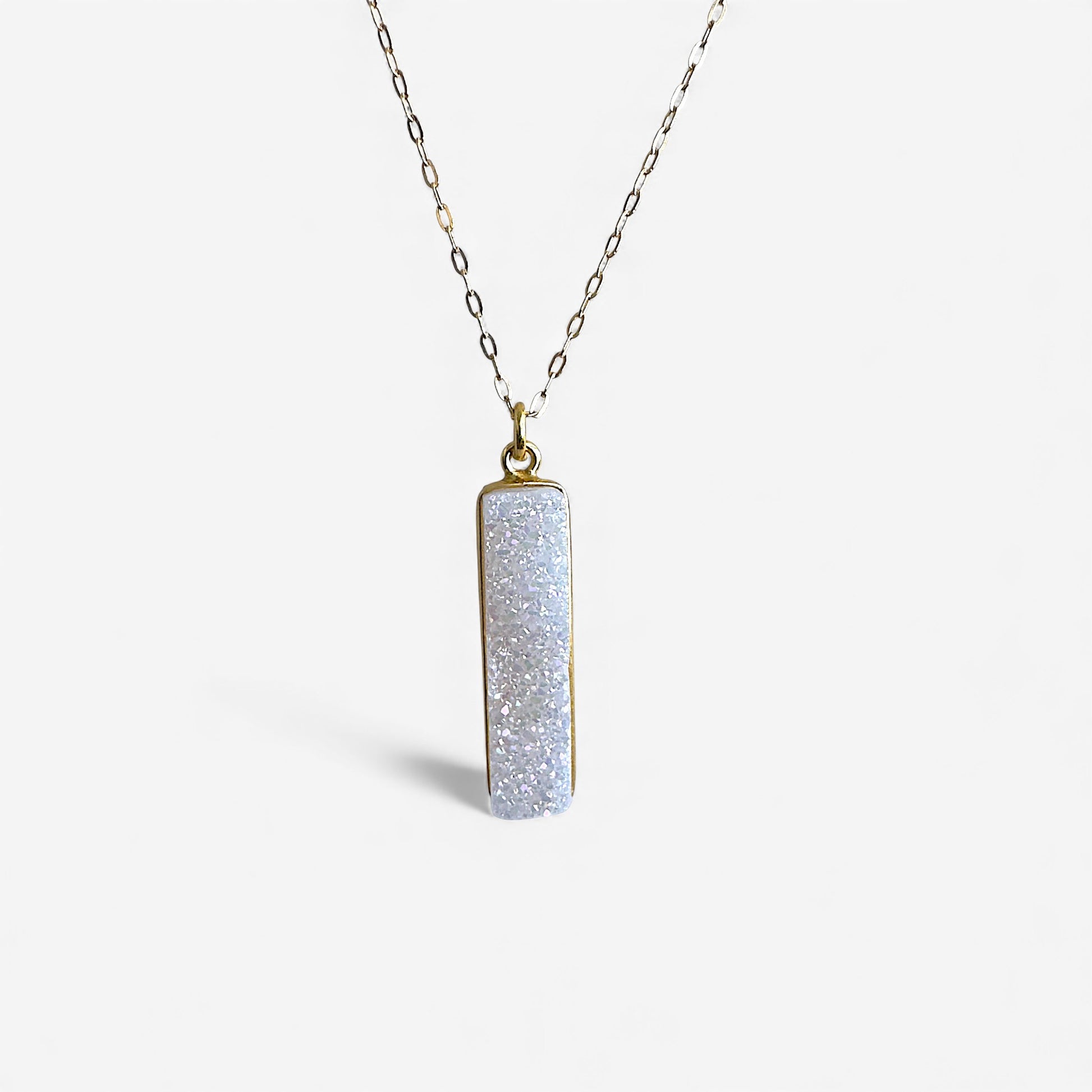 Rainbow druzy long pendant on a 14k gold filled drawn cable chain