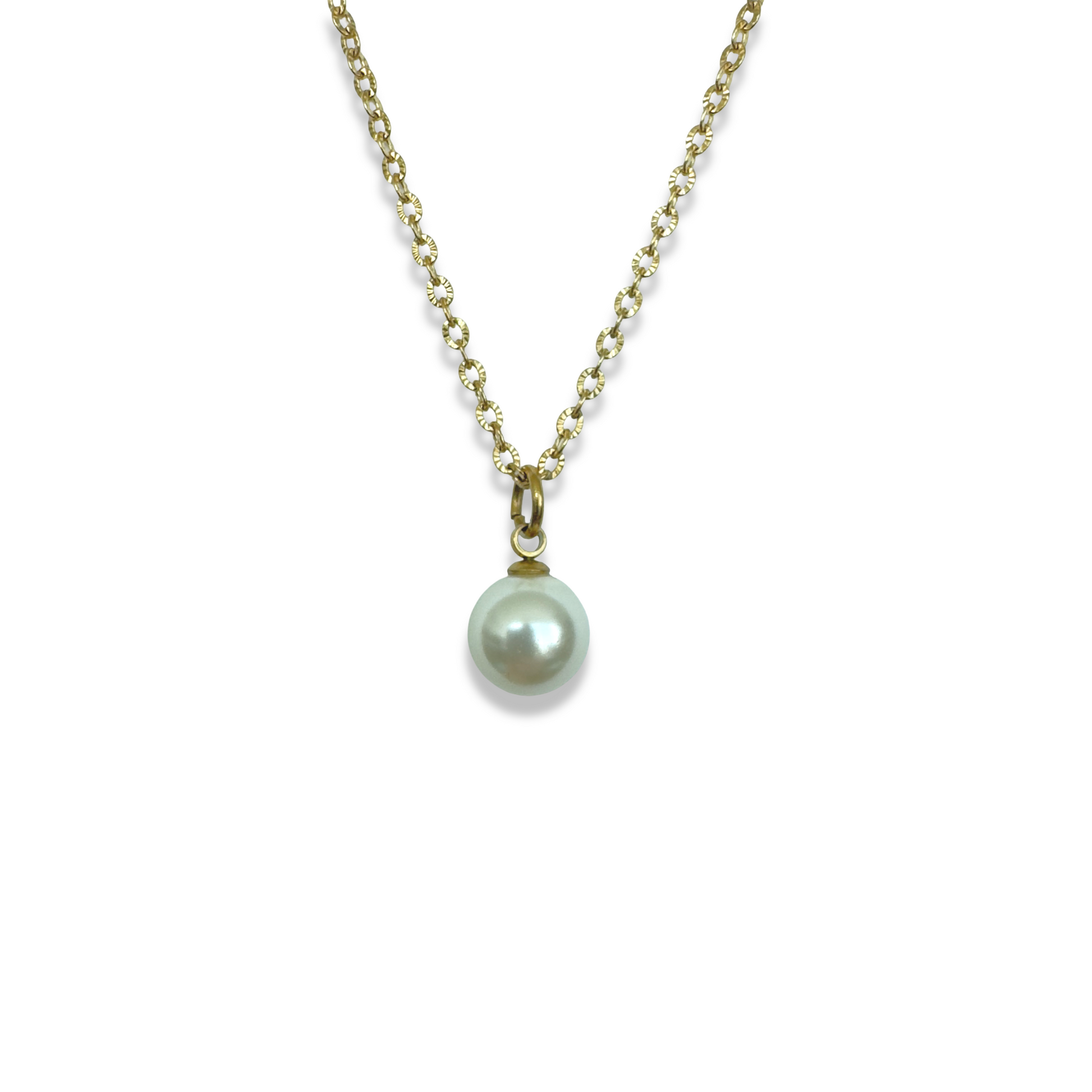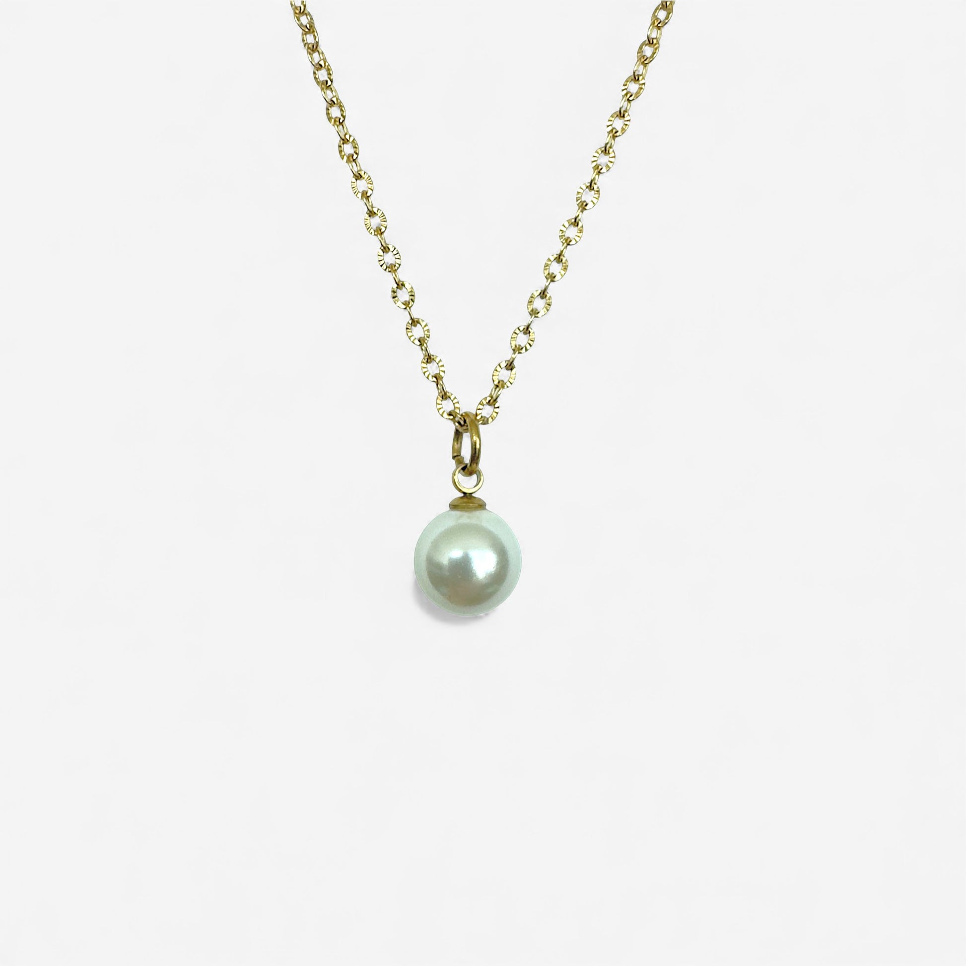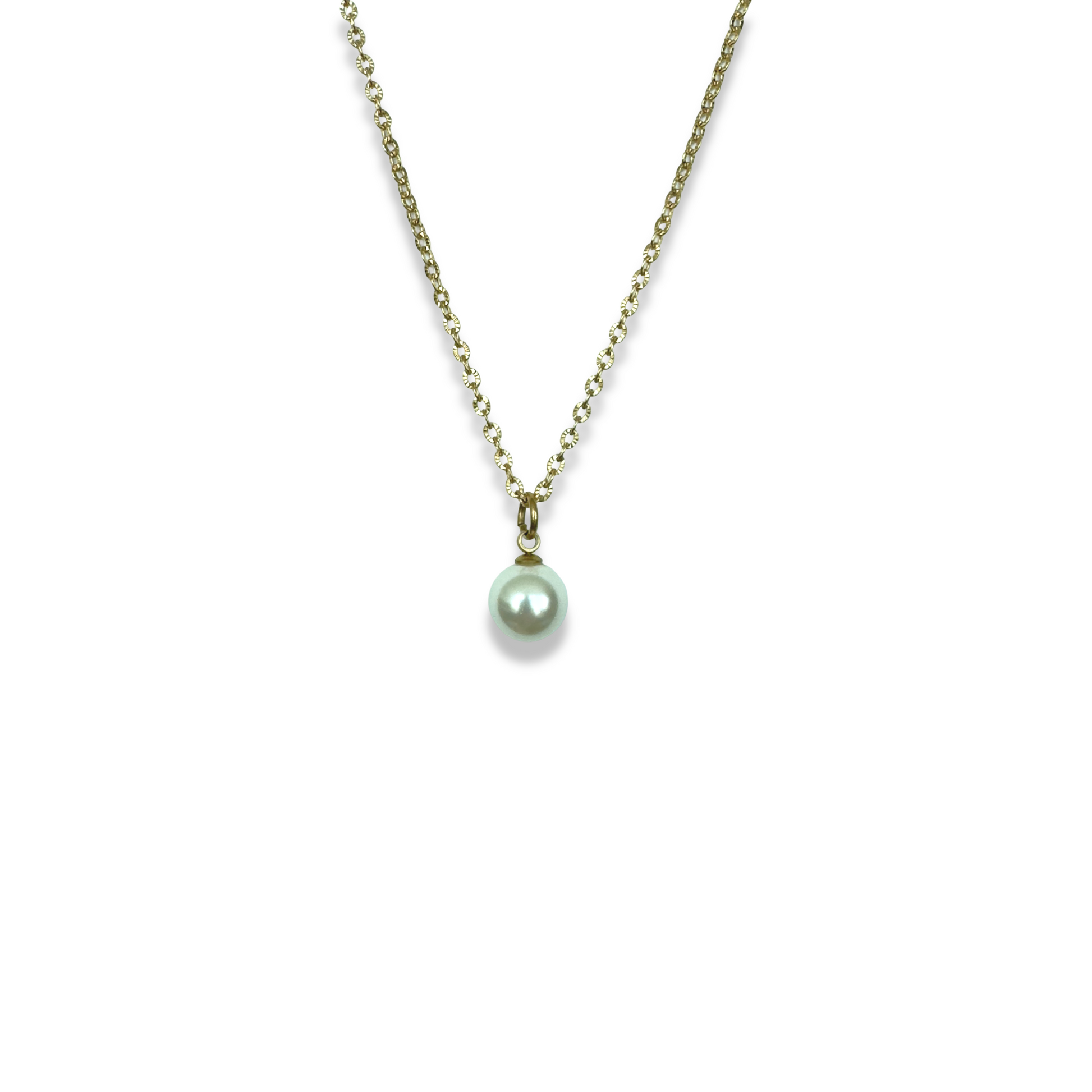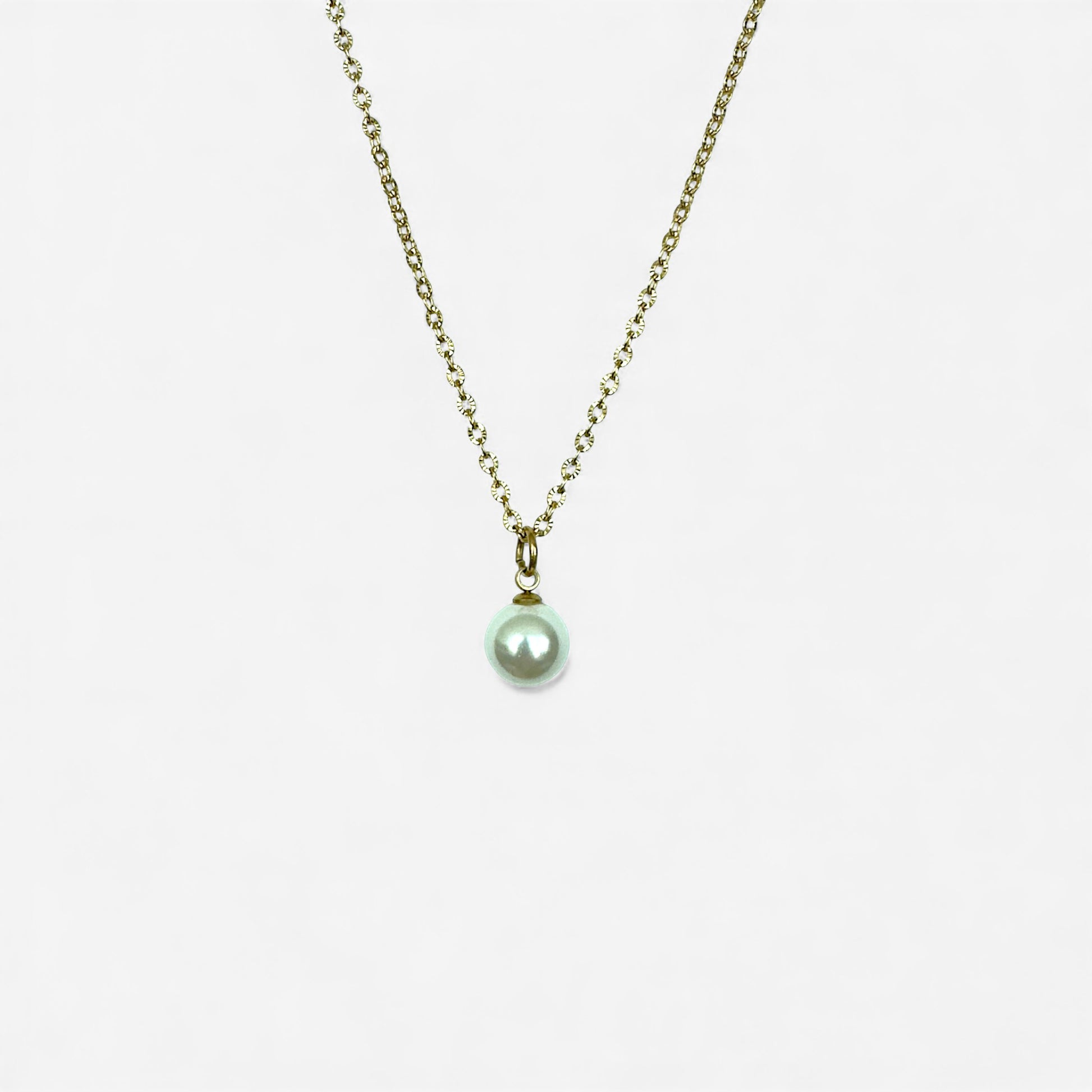 Glass pearl pendant on an 18k gold PVD (water resistant) crimped oval 16" chain with 2" extender