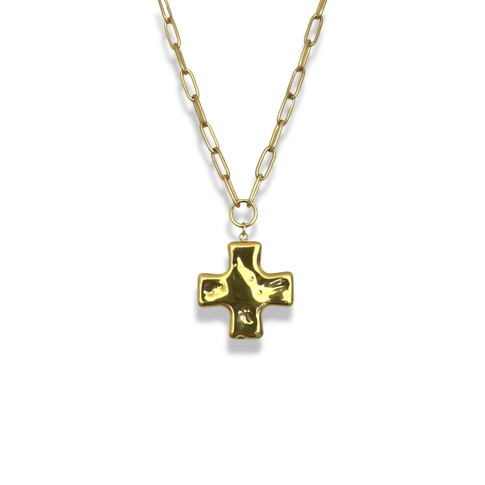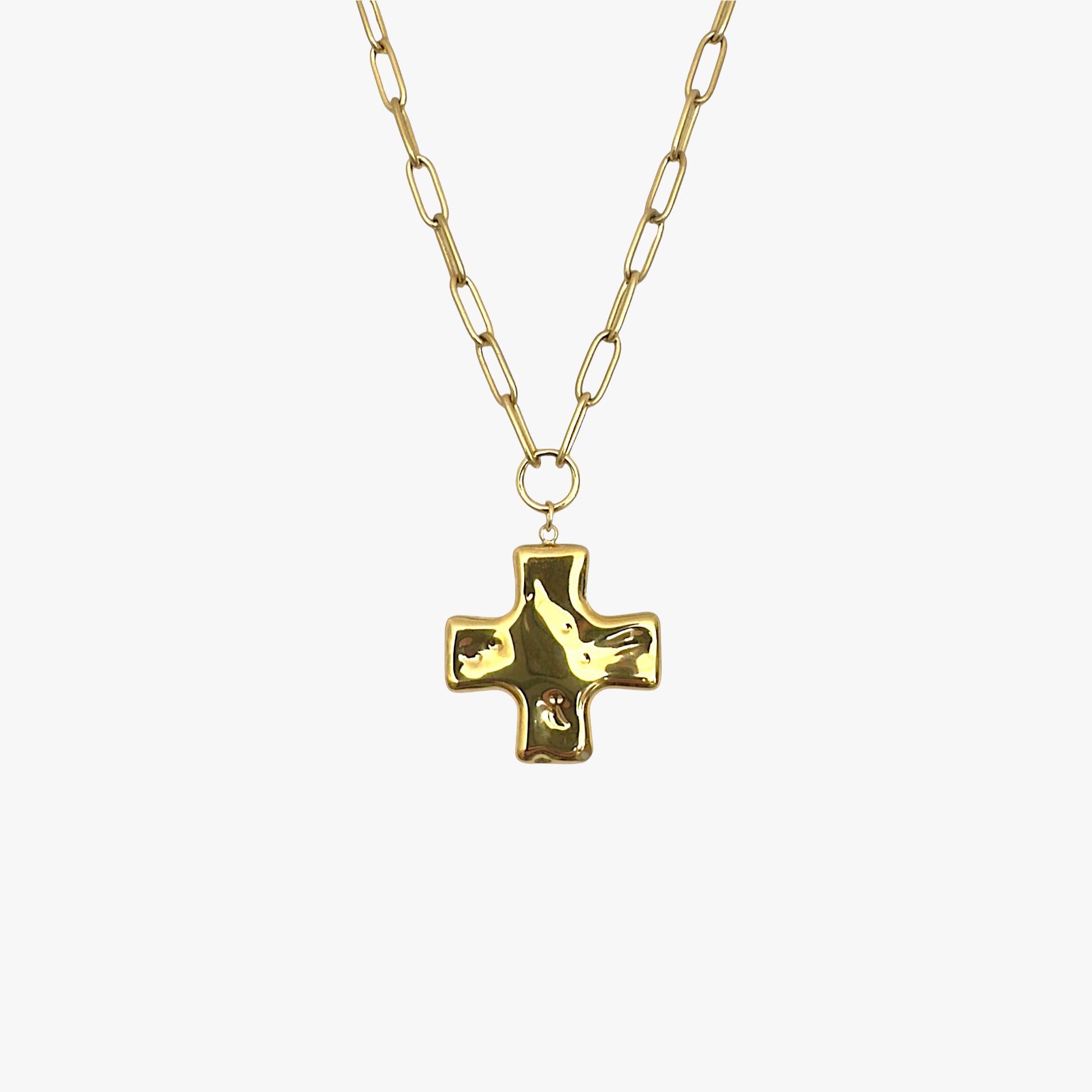 18k gold plated stainless steel cross and paper clip necklace with extender
