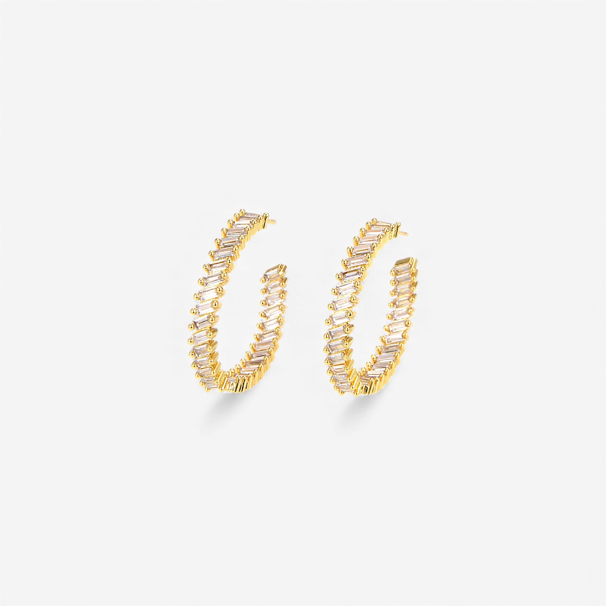 Large gold filled open hoops with baguette CZ stones