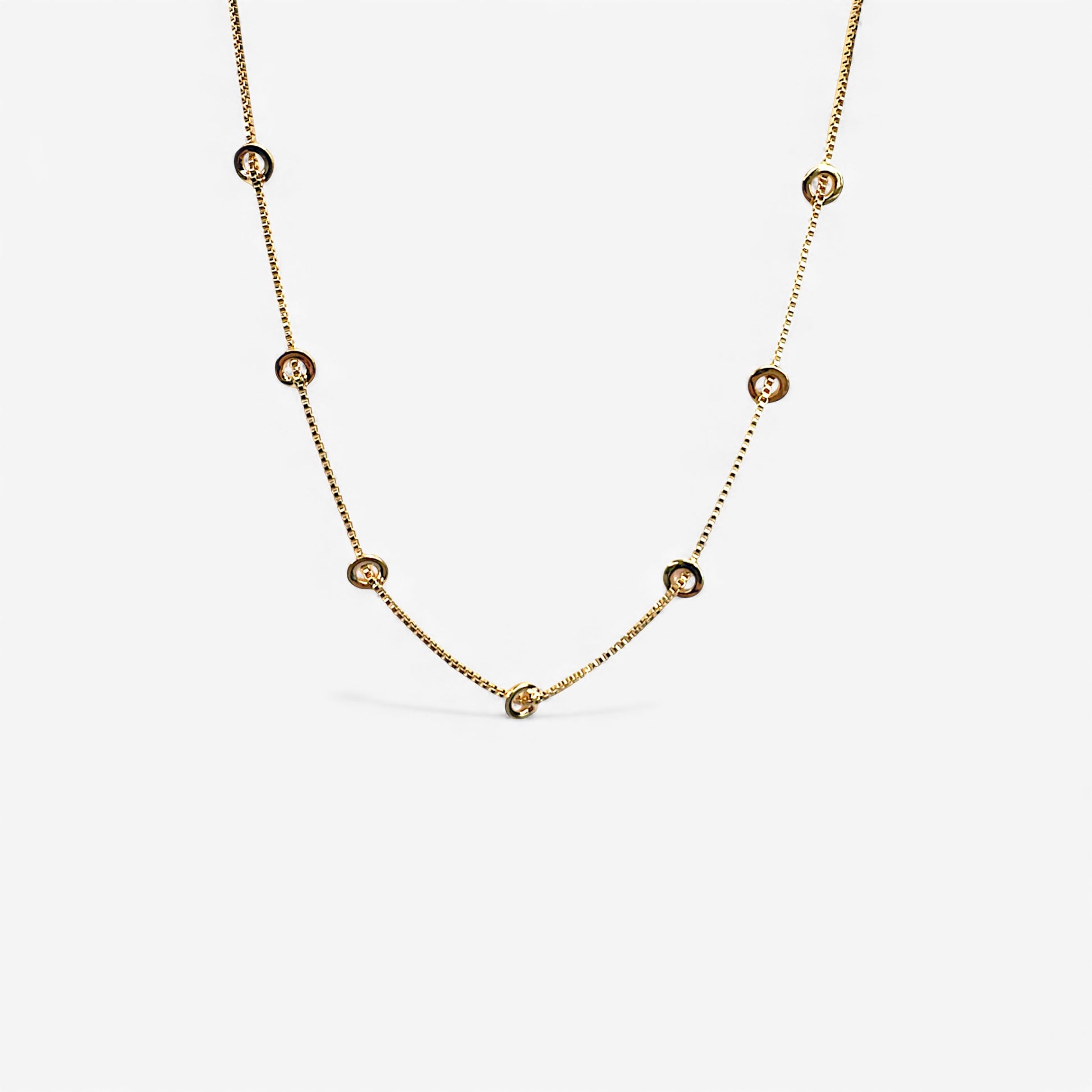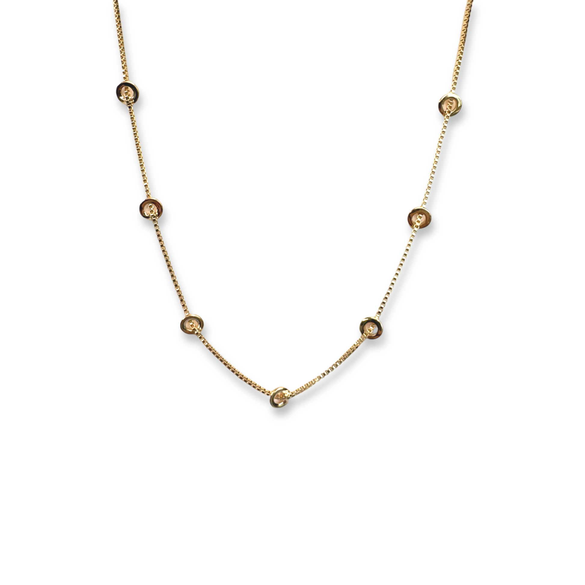 15.5" gold filled box chain with accent satellite circles and 2" extender chain