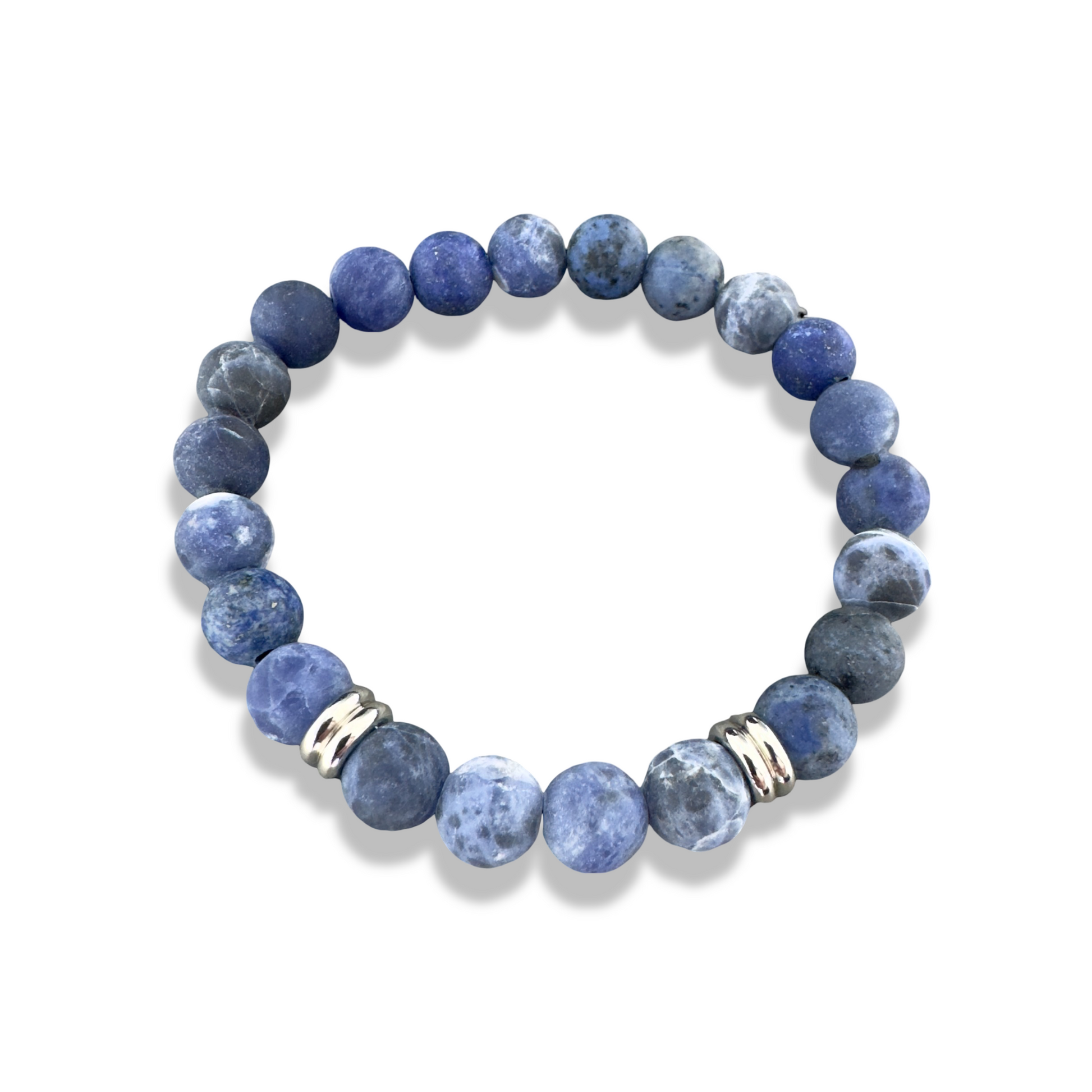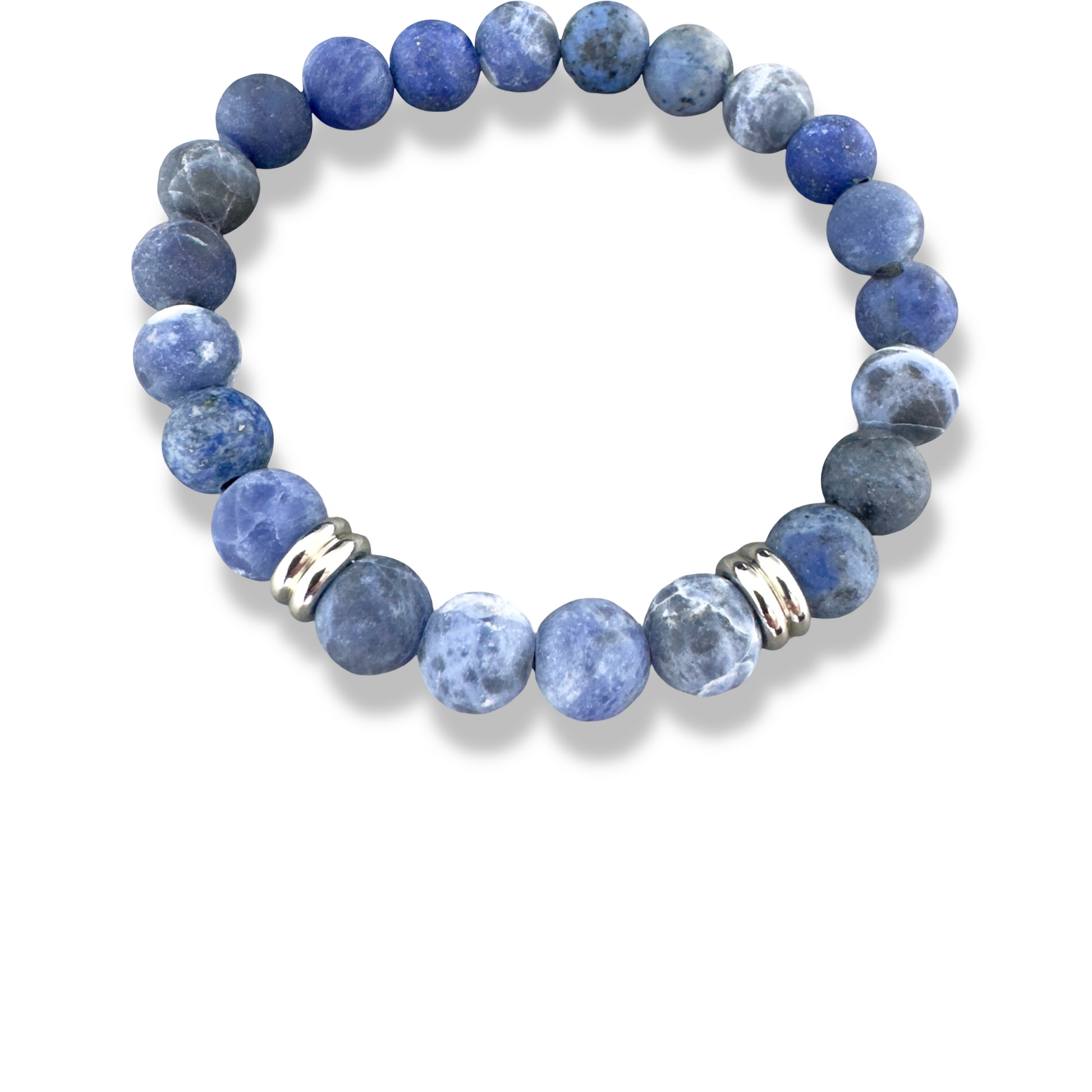 8mm matte sodalite and matte lapis lazuli, rounds, with 2 stainless steel rondelles