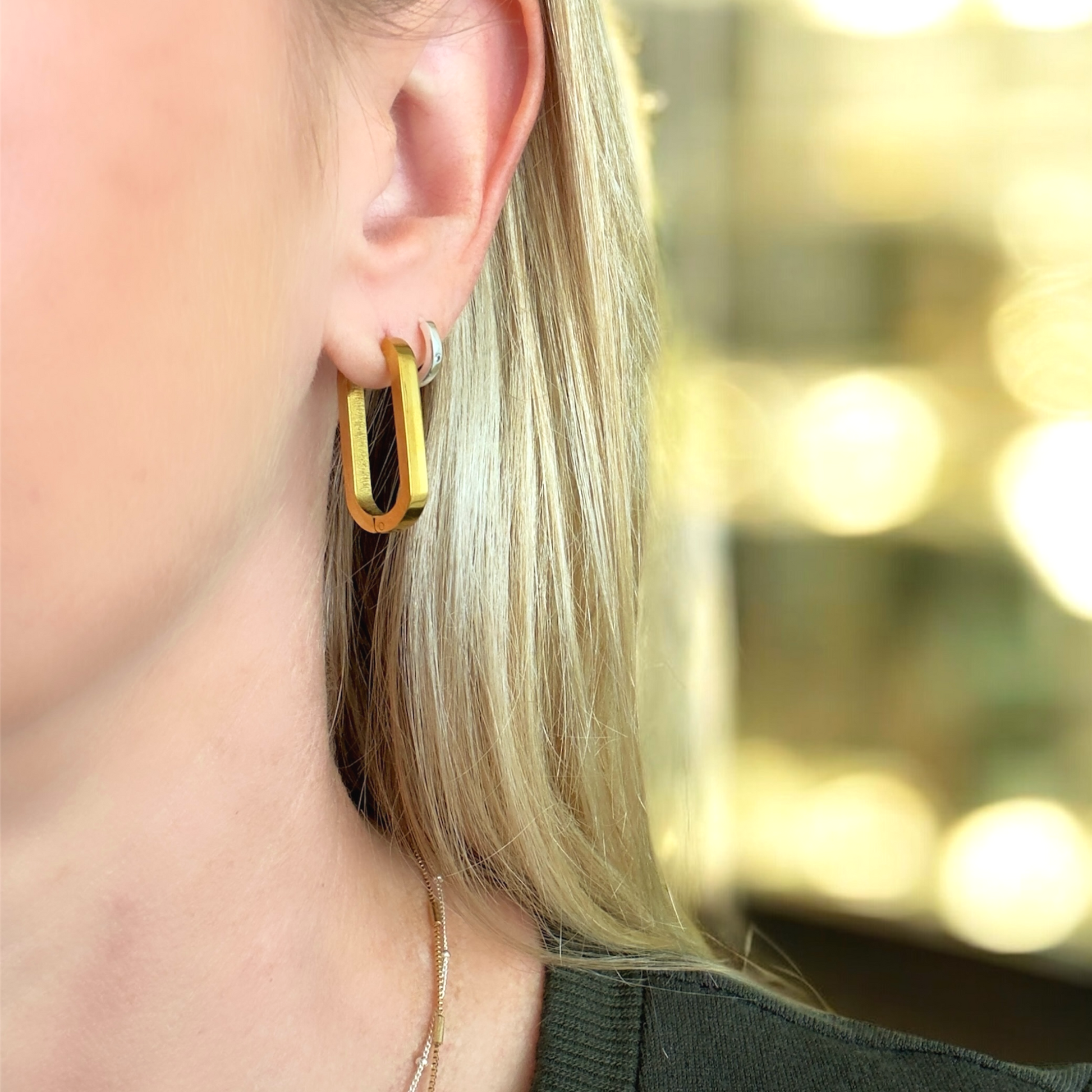 Large 18k gold OR silver oval gold huggies, PVD stainless steel