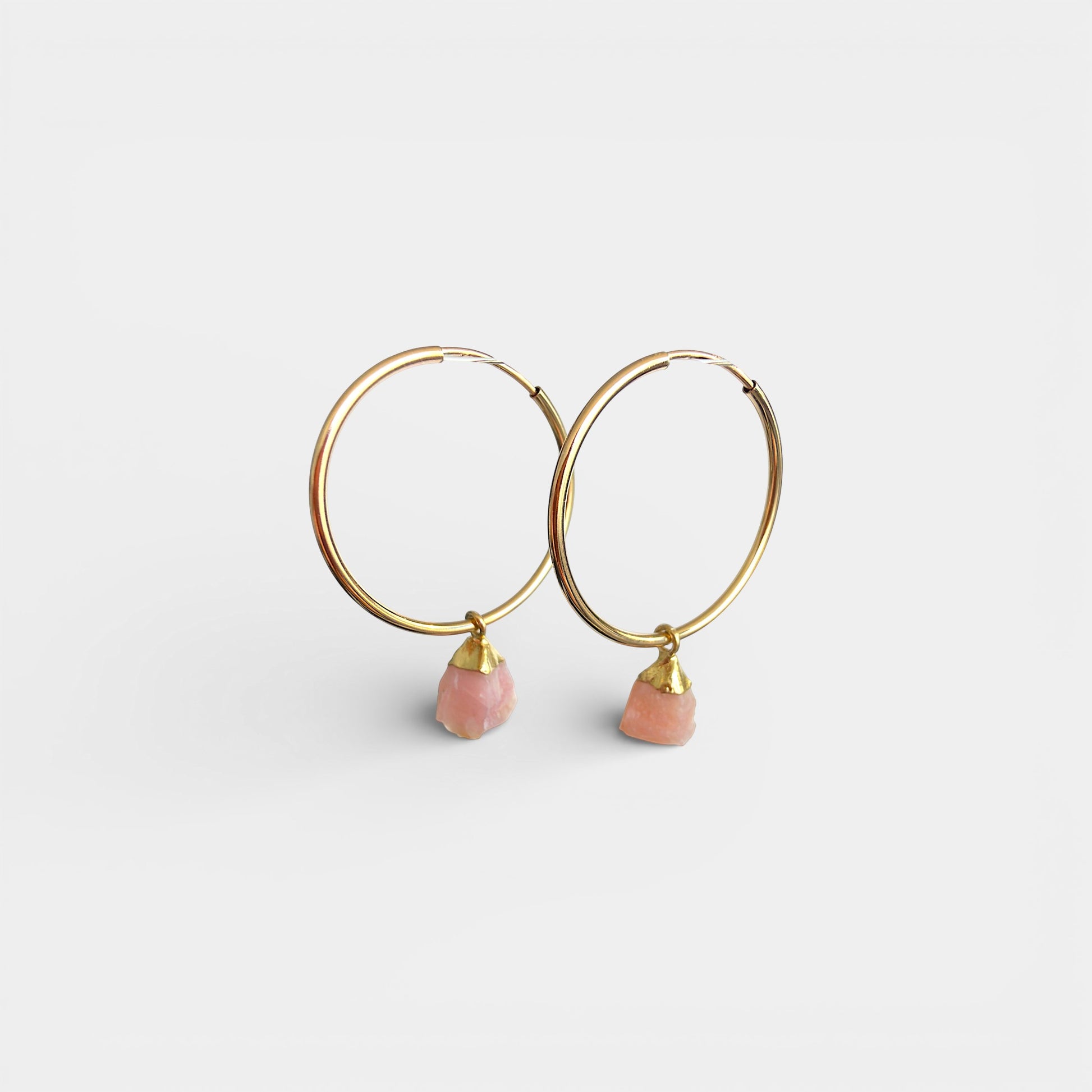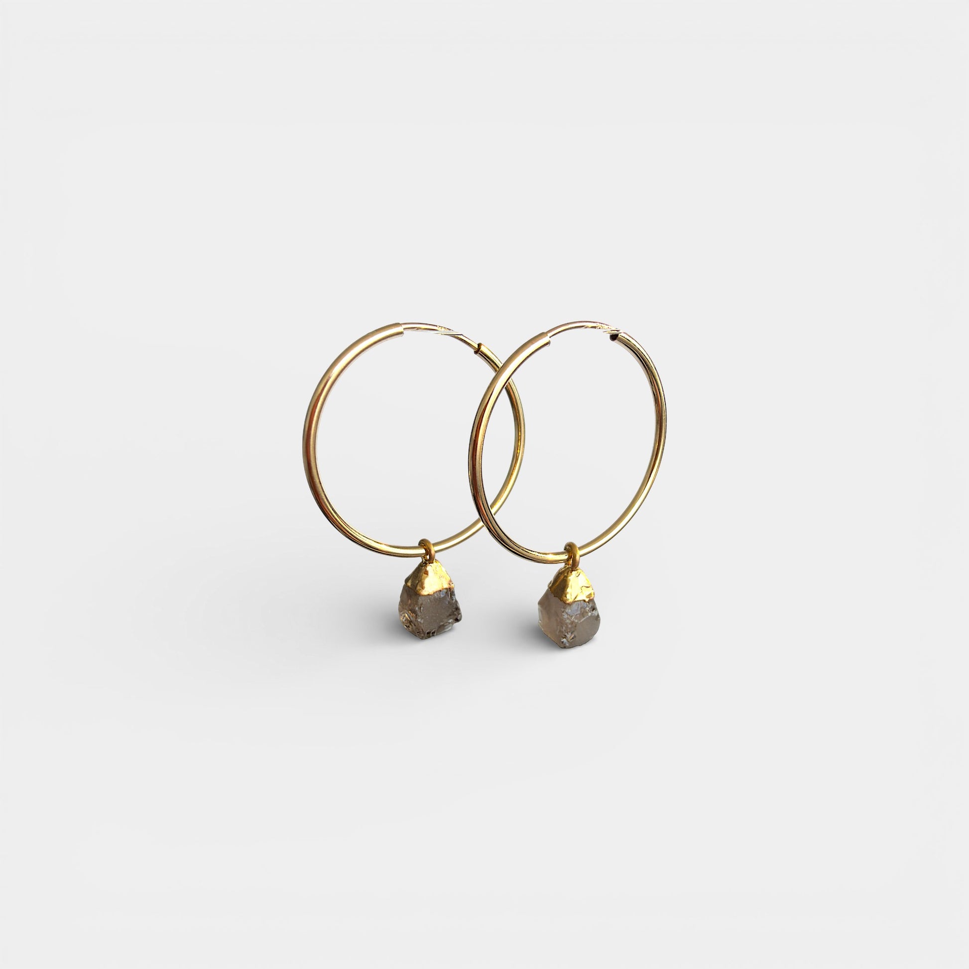 Rough cut gemstone dangles on gold filled 24mm endless hoops