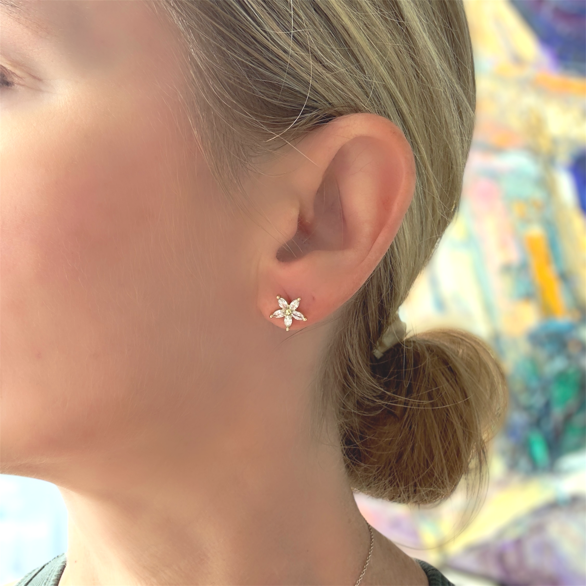 Sterling Silver marquise CZ star studs on sterling silver posts. (new earrings are sterling silver, not gold vermeil as seen in pic)