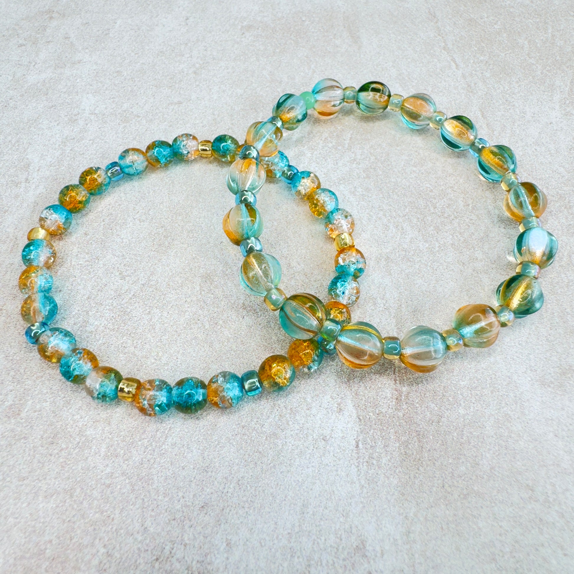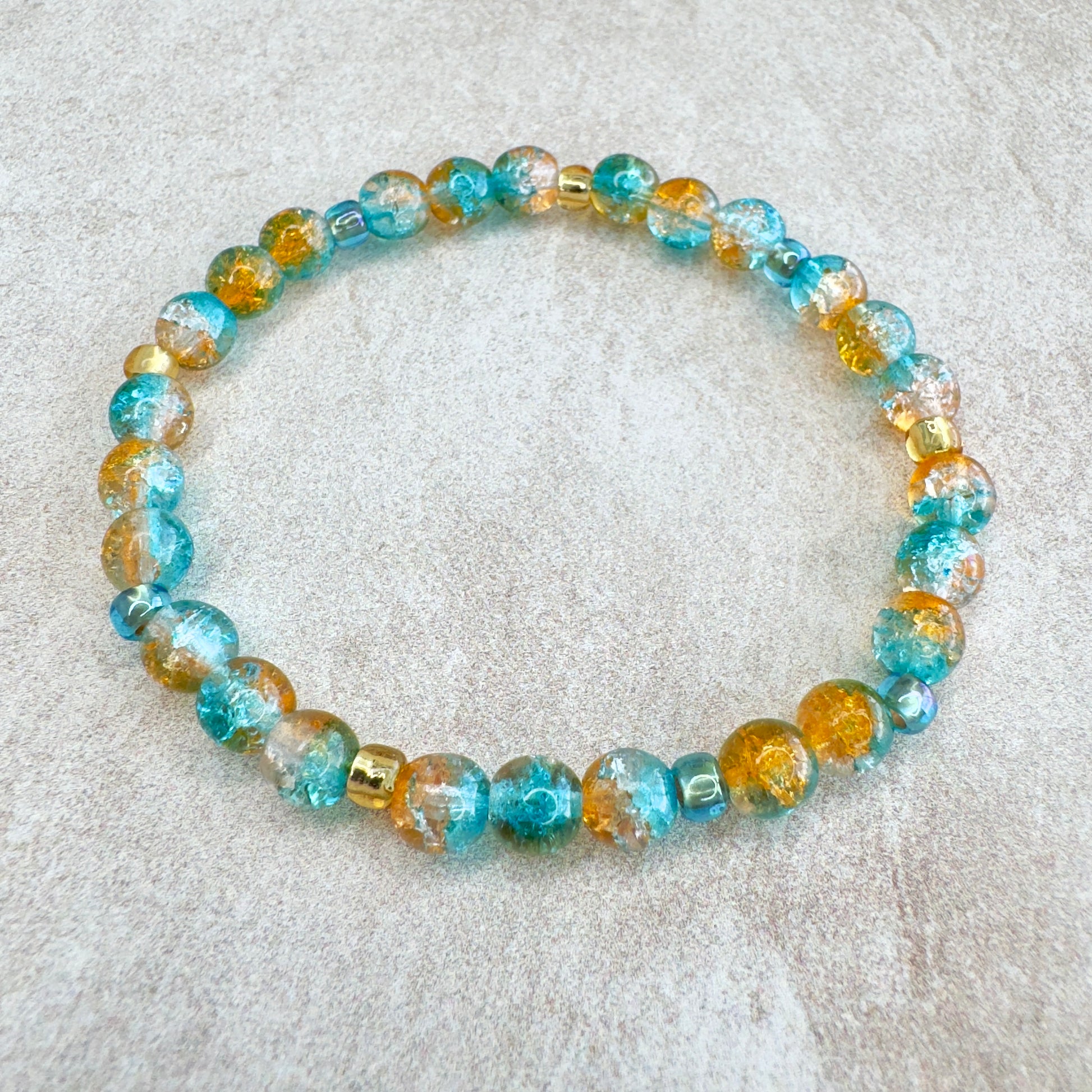6mm Czech glass dual coated aqua/ orange round beads with aqua & orange seed beads