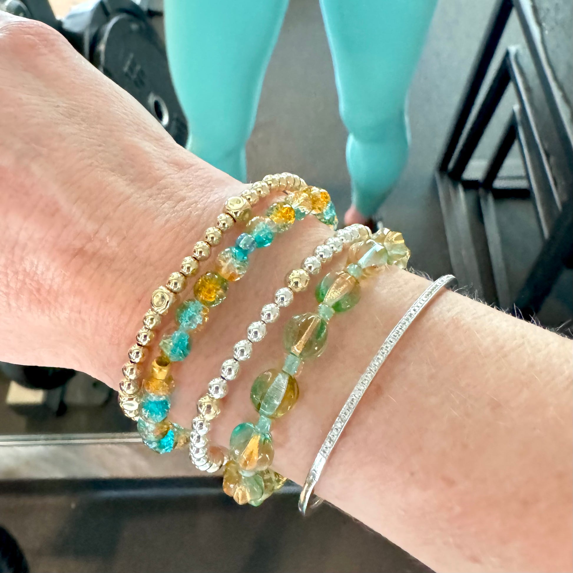 All B+S beaded bracelets are strung on high quality stretch cord. Bead color, shape, and design may vary slightly due to the natural nature of the beads.