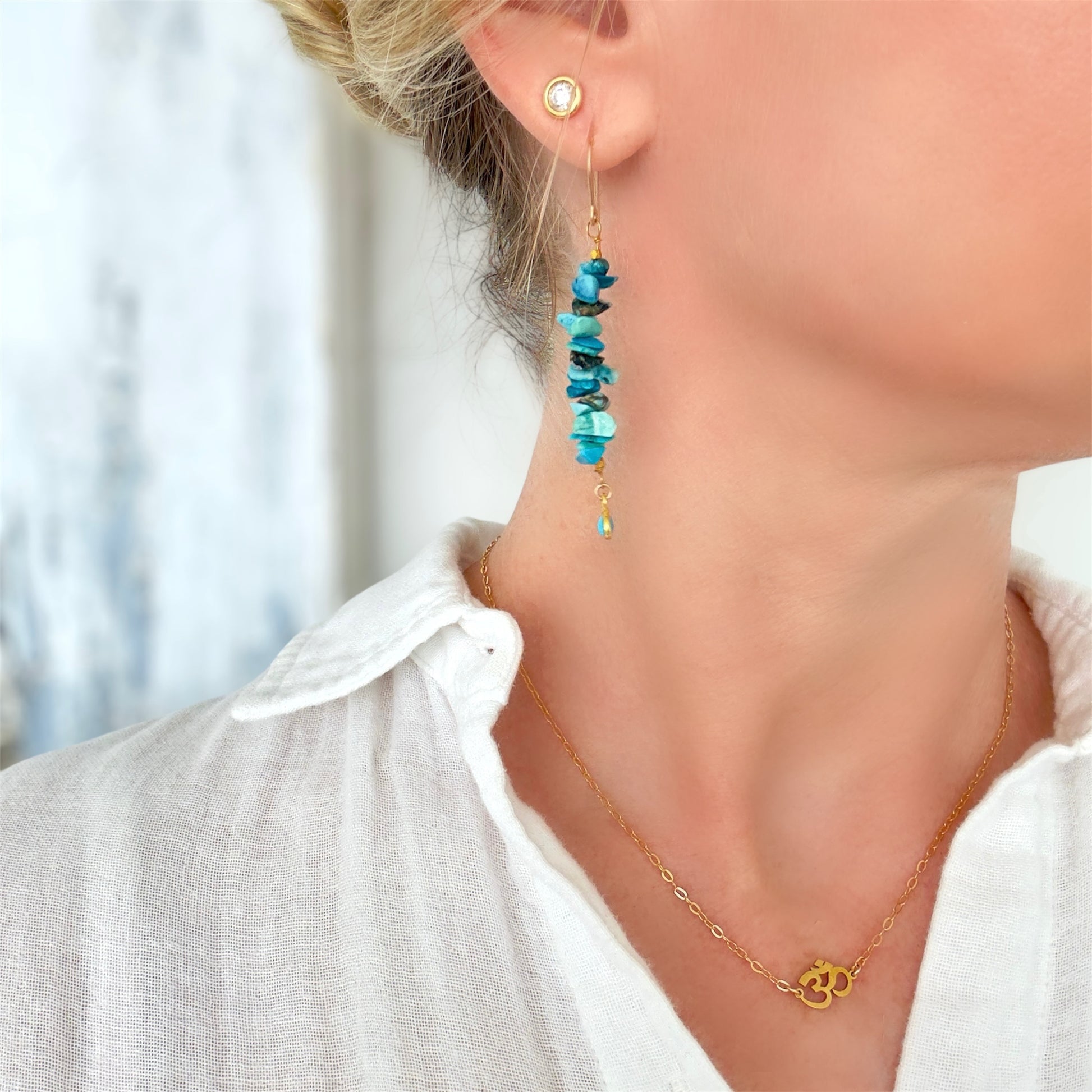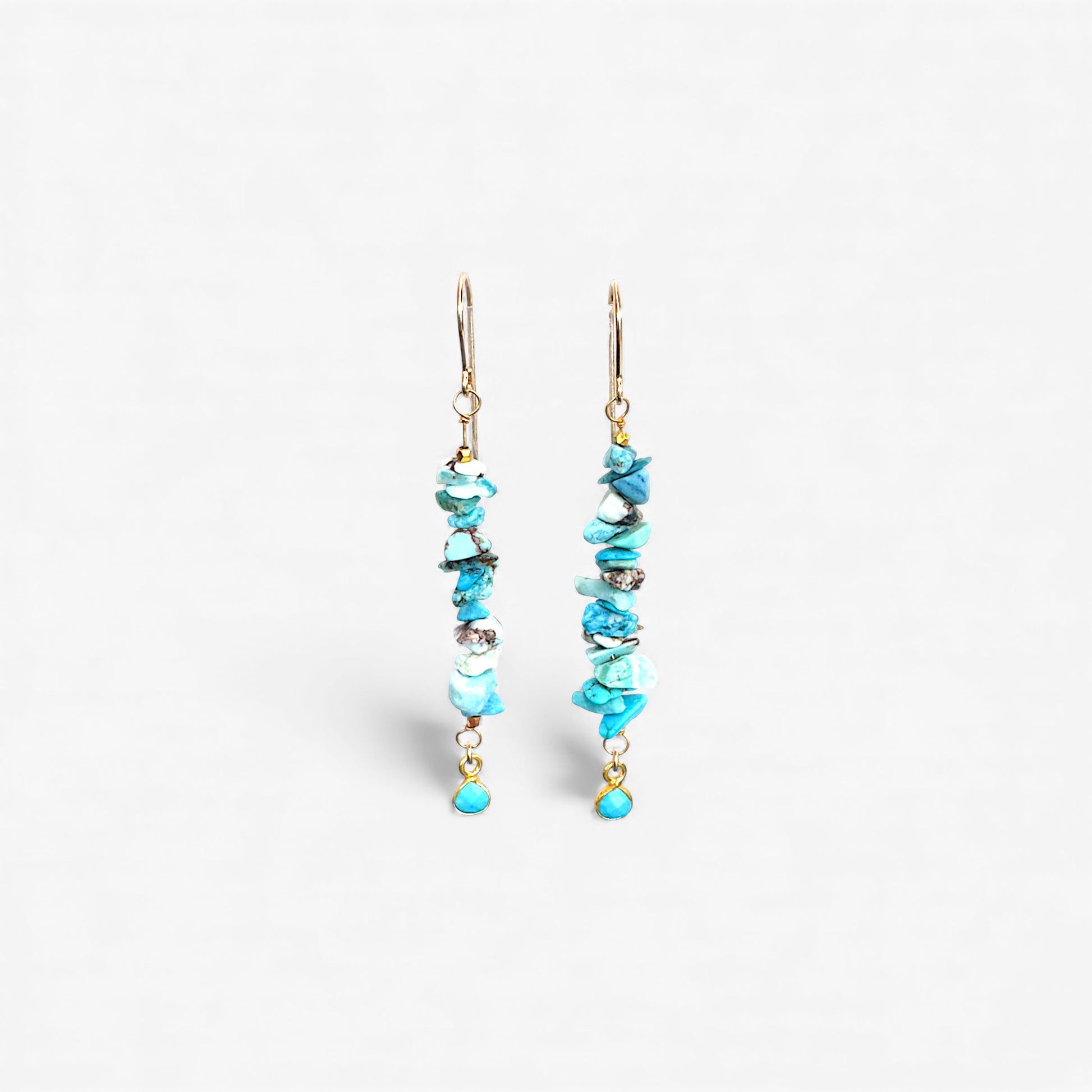 Turquoise uncut stones with a pear shaped turquoise dangle stone