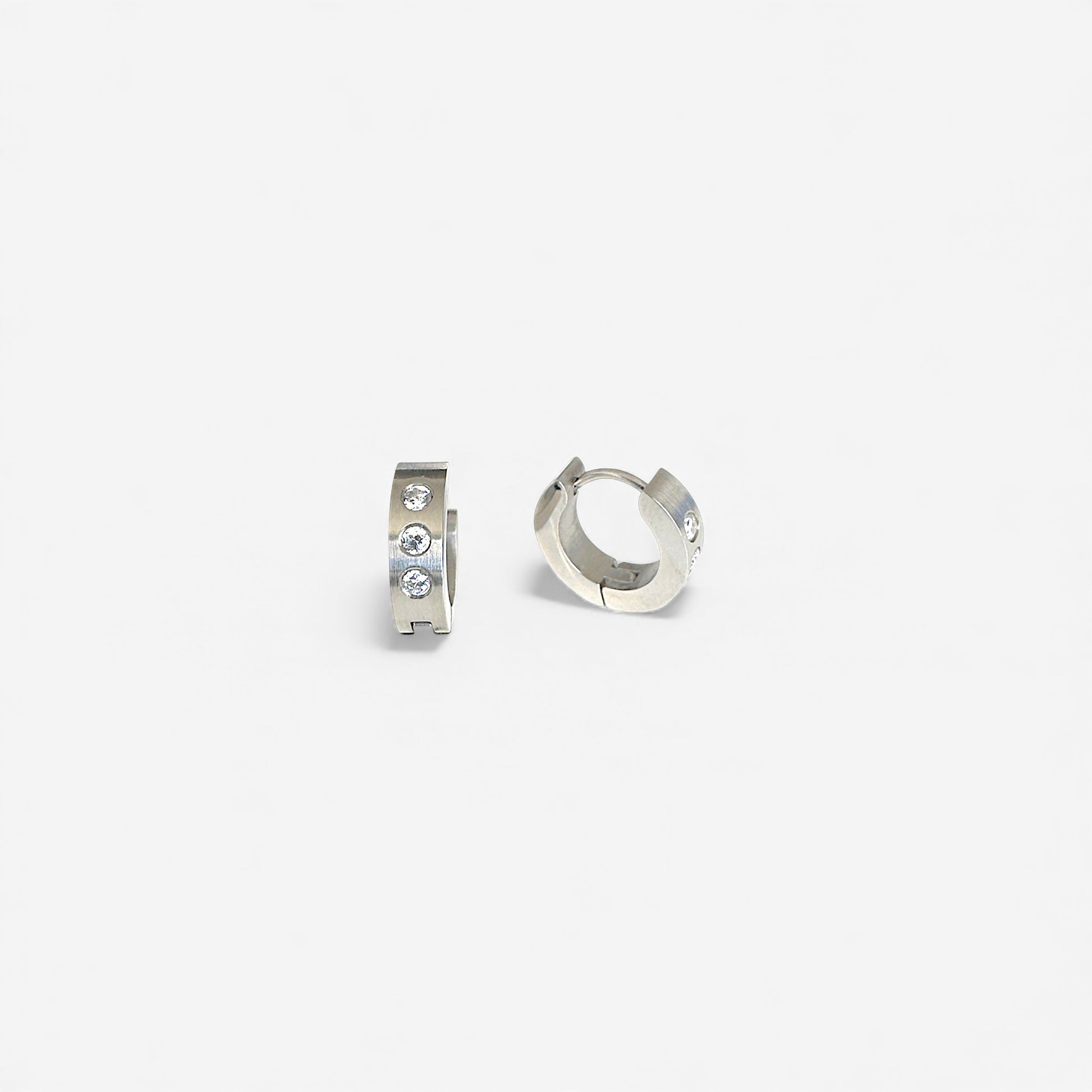 Silver huggies with CZ studs, PVD stainless steel